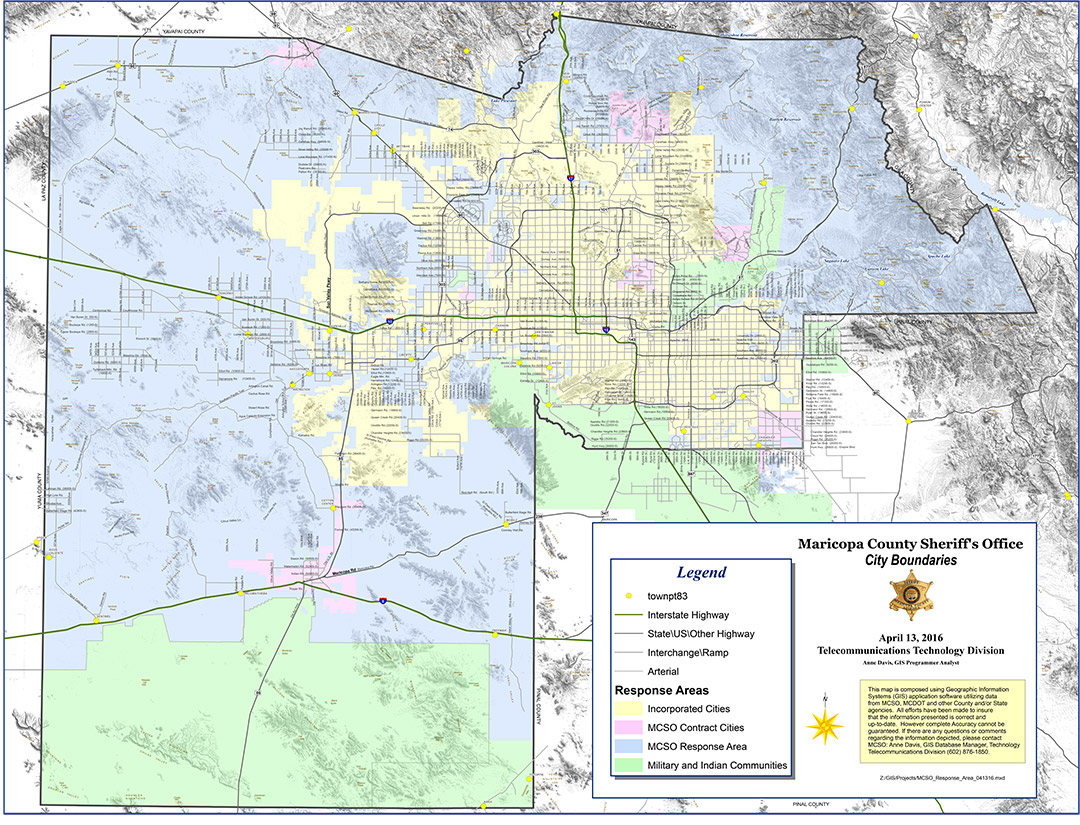 Maricopa County is Arizona’s most populous and fastest growing county. It is the largest of Arizona’s fifteen counties and the fourth largest county in the nation. Approximately four and half million people call Maricopa County home, more than half of the entire population of Arizona. Phoenix is the seat of Maricopa County, the state capital, and the largest city in the state.